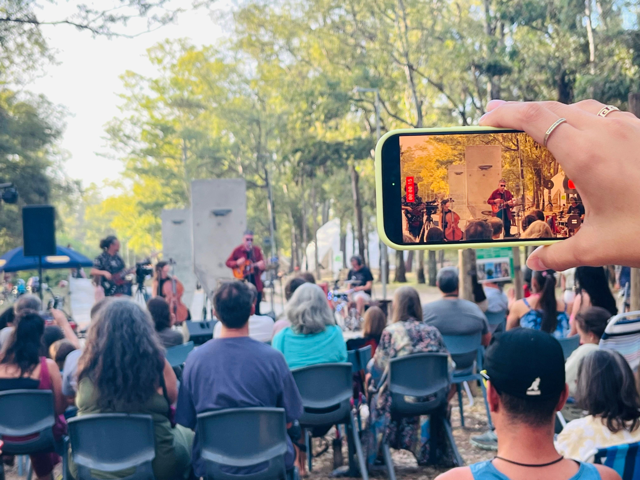 Y el parque se llenó de público entusiasta disfrutando de tres uruguayas, de primer nivel en un atardecer lleno de música y encuentro interegeneracional. A la ya habitual juntada de domingo con el préstamo de parrilleros y juegos para infancias se sumaron tres bandas: El pulso de lo incierto, Jorge Schellemberg Cuarteto y Diego Janssen.