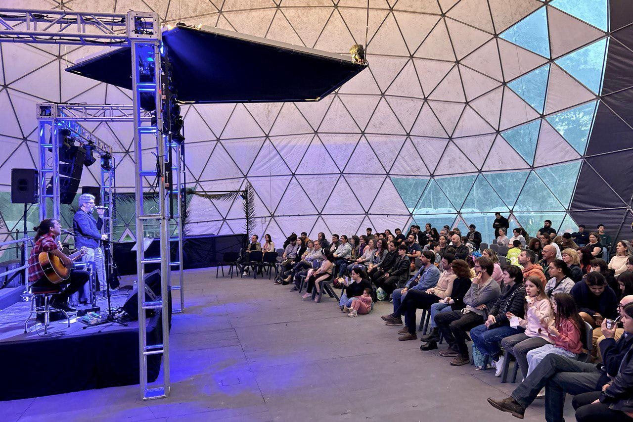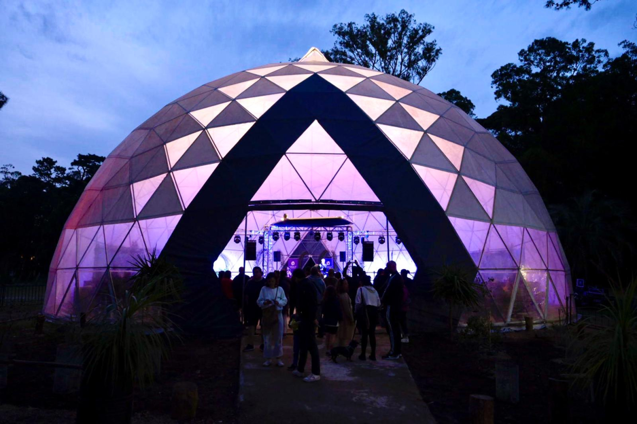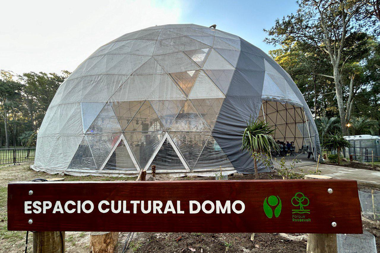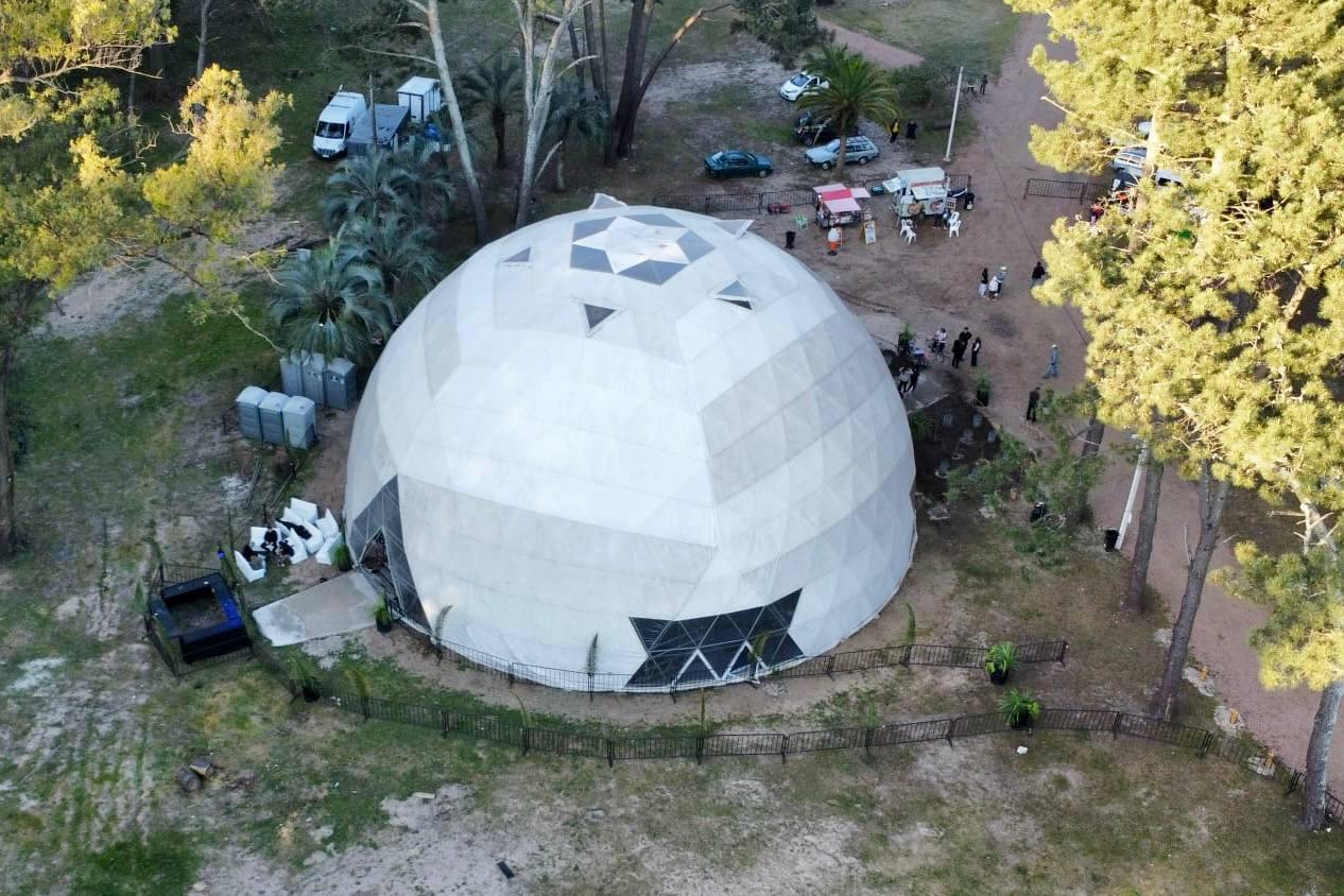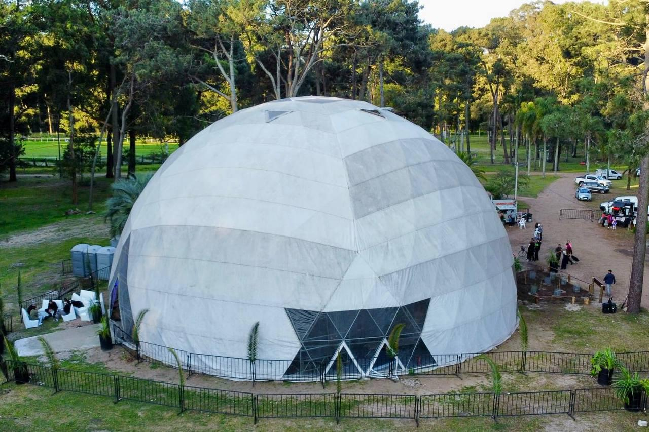 La cúpula geodésica, de 25 mts. de diámetro por 14 mts. de altura, es ideal para actividades que necesiten un espacio cerrado de grandes dimensiones. Es eldomo armado más grande del país. Cuenta con una capacidad importante de público. Dependiendo de la actividad, puede llegar a albergar hasta 1500 personas.