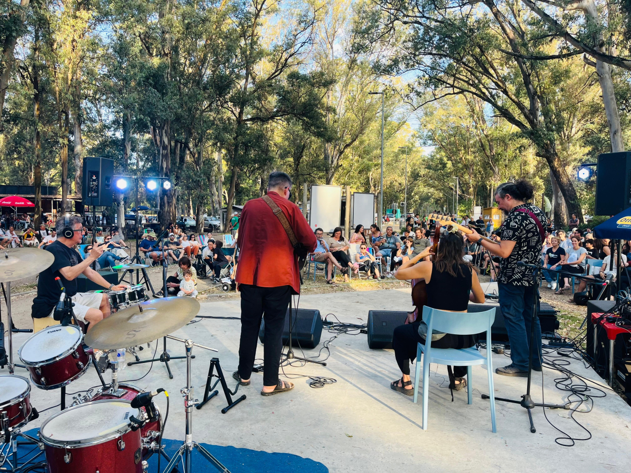 Y el parque se llenó de público entusiasta disfrutando de tres uruguayas, de primer nivel en un atardecer lleno de música y encuentro interegeneracional. A la ya habitual juntada de domingo con el préstamo de parrilleros y juegos para infancias se sumaron tres bandas: El pulso de lo incierto, Jorge Schellemberg Cuarteto y Diego Janssen.